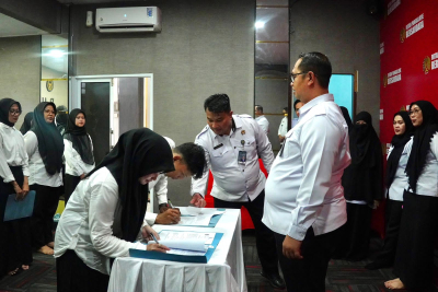 PANGKEP — Rutan Kelas IIB Pangkep menyambut kedatangan 40 peserta magang fresh graduate dalam Program Pemagangan Nasional Batch II yang dibuka serentak oleh Kementerian Ketenagakerjaan RI Tahun 2025. Para peserta disambut oleh Kepala Rutan Pangkep bersama pejabat struktural dan jajaran staf pada Senin (24/11).