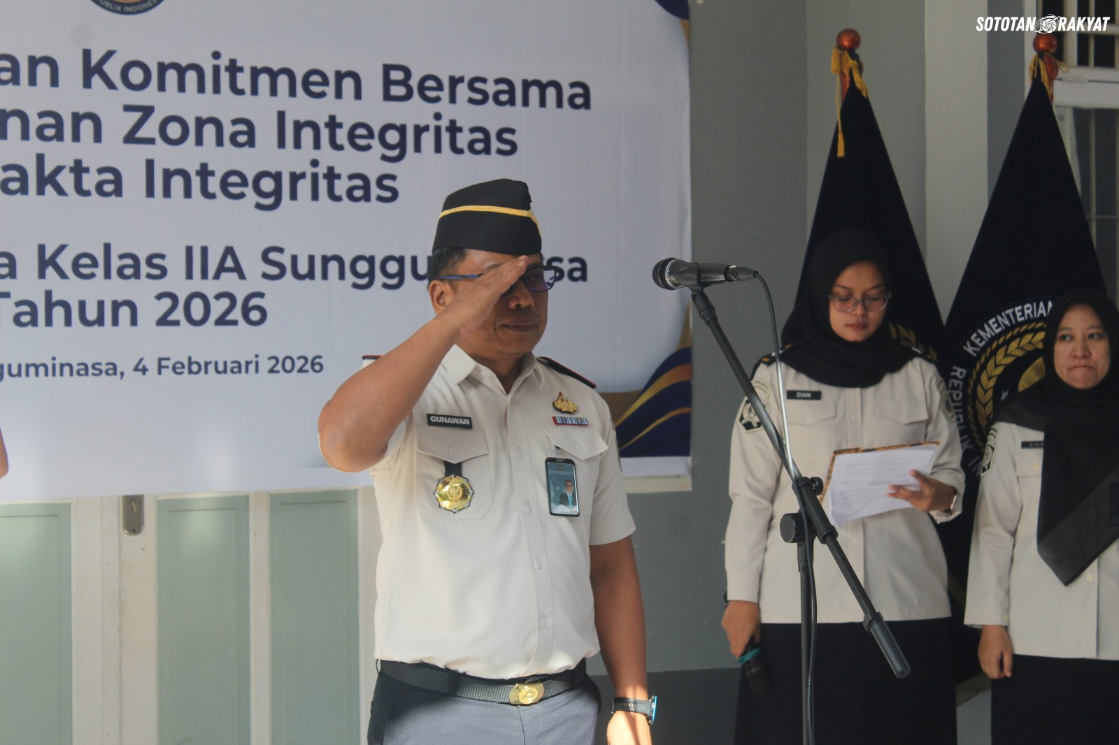 GOWA – Lembaga Pemasyarakatan (Lapas) Narkotika Kelas IIA Sungguminasa melaksanakan kegiatan Penandatanganan Komitmen Bersama Pembangunan Zona Integritas menuju Wilayah Bebas dari Korupsi (WBK) dan Wilayah Birokrasi Bersih dan Melayani (WBBM), yang digelar di selasar, Rabu (4/2).