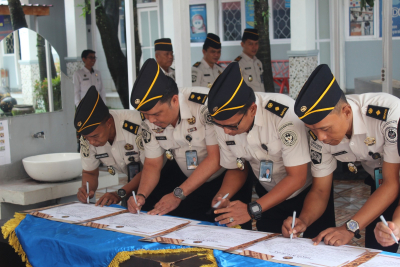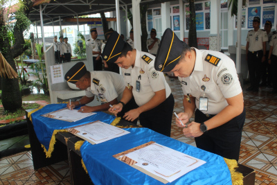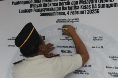 GOWA – Lembaga Pemasyarakatan (Lapas) Narkotika Kelas IIA Sungguminasa melaksanakan kegiatan Penandatanganan Komitmen Bersama Pembangunan Zona Integritas menuju Wilayah Bebas dari Korupsi (WBK) dan Wilayah Birokrasi Bersih dan Melayani (WBBM), yang digelar di selasar, Rabu (4/2).