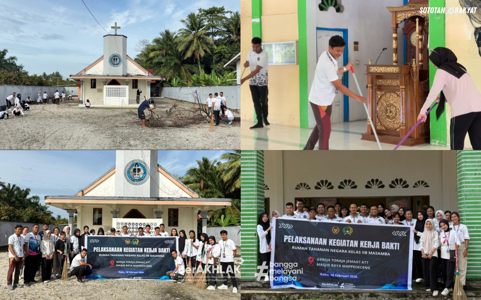 Masamba – Rumah Tahanan Negara (Rutan) Kelas IIB Masamba melaksanakan kegiatan kerja bakti sosial di dua tempat ibadah, yakni Gereja Toraja Jemaat ATT dan Masjid Raya Mappedeceng, pada Rabu (18/2/2026) mulai pukul 08.30 Wita hingga selesai.