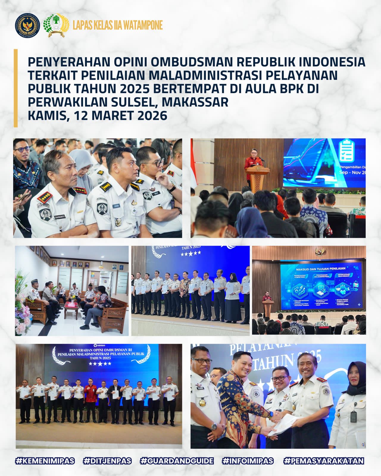 Berdasarkan hasil penilaian tersebut, Lapas Kelas IIA Watampone memperoleh Nilai “Baik” dalam Penilaian Opini Ombudsman Republik Indonesia terkait Penilaian Maladministrasi Pelayanan Publik Tahun 2025.