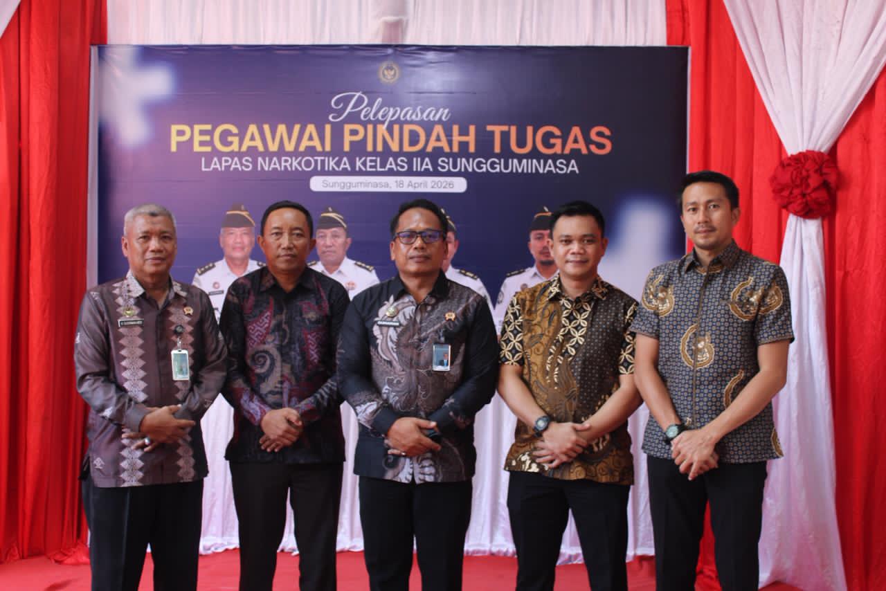 SUNGGUMINASA — Lembaga Pemasyarakatan (Lapas) Narkotika Kelas IIA Sungguminasa menggelar kegiatan pelepasan pegawai pindah tugas yang berlangsung pada Sabtu, 18 April 2026, bertempat di selasar kantor. Kegiatan tersebut dihadiri oleh seluruh petugas Lapas Narkotika Sungguminasa sebagai bentuk penghormatan dan apresiasi atas dedikasi para pegawai yang akan melanjutkan pengabdian di tempat tugas yang baru.
