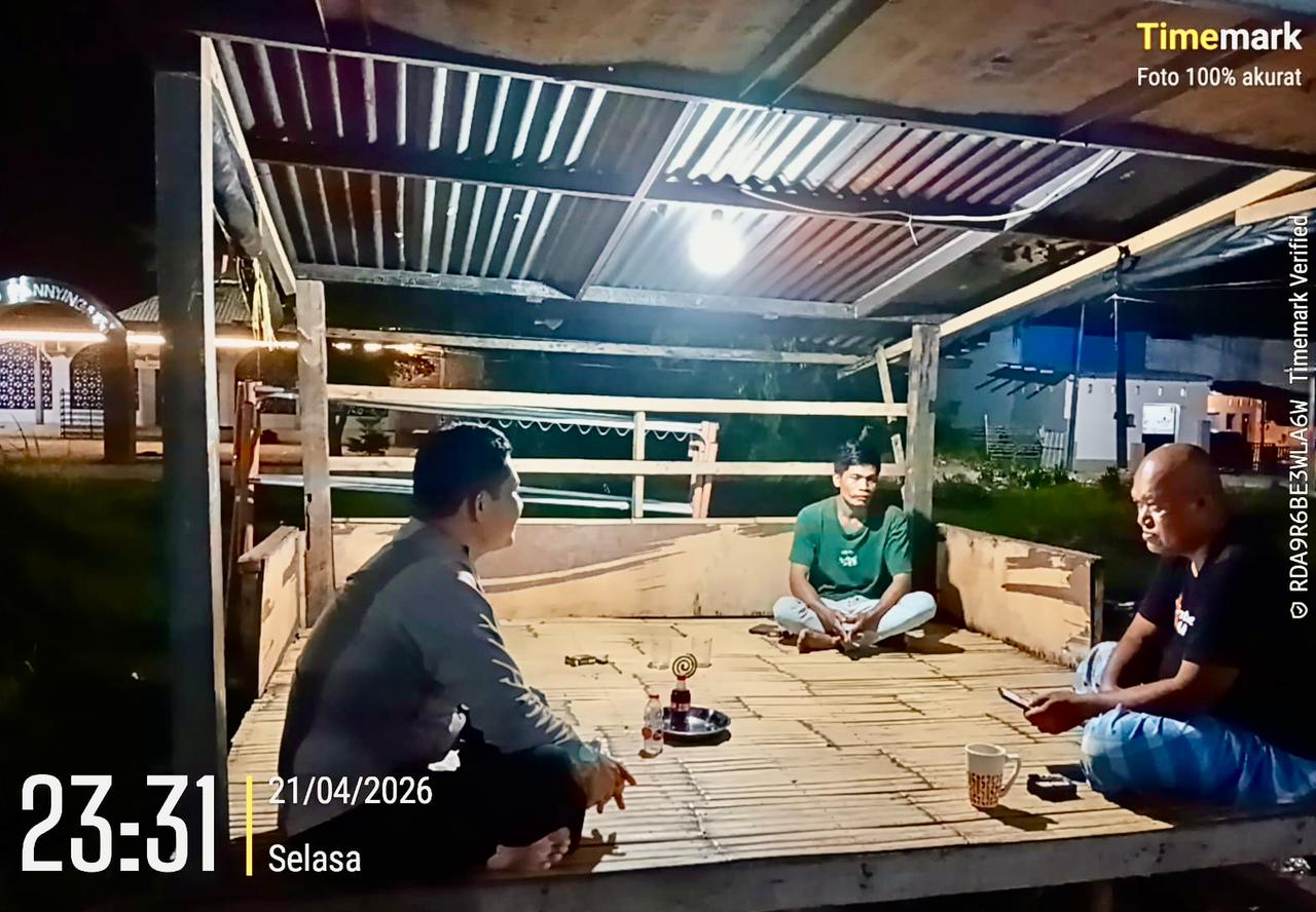 Dalam kunjungan tersebut, Aiptu Asrul berdialog langsung dengan masyarakat yang tengah melaksanakan ronda malam. Ia menyampaikan sejumlah pesan kamtibmas, sekaligus mengajak warga untuk terus berperan aktif menjaga keamanan lingkungan.